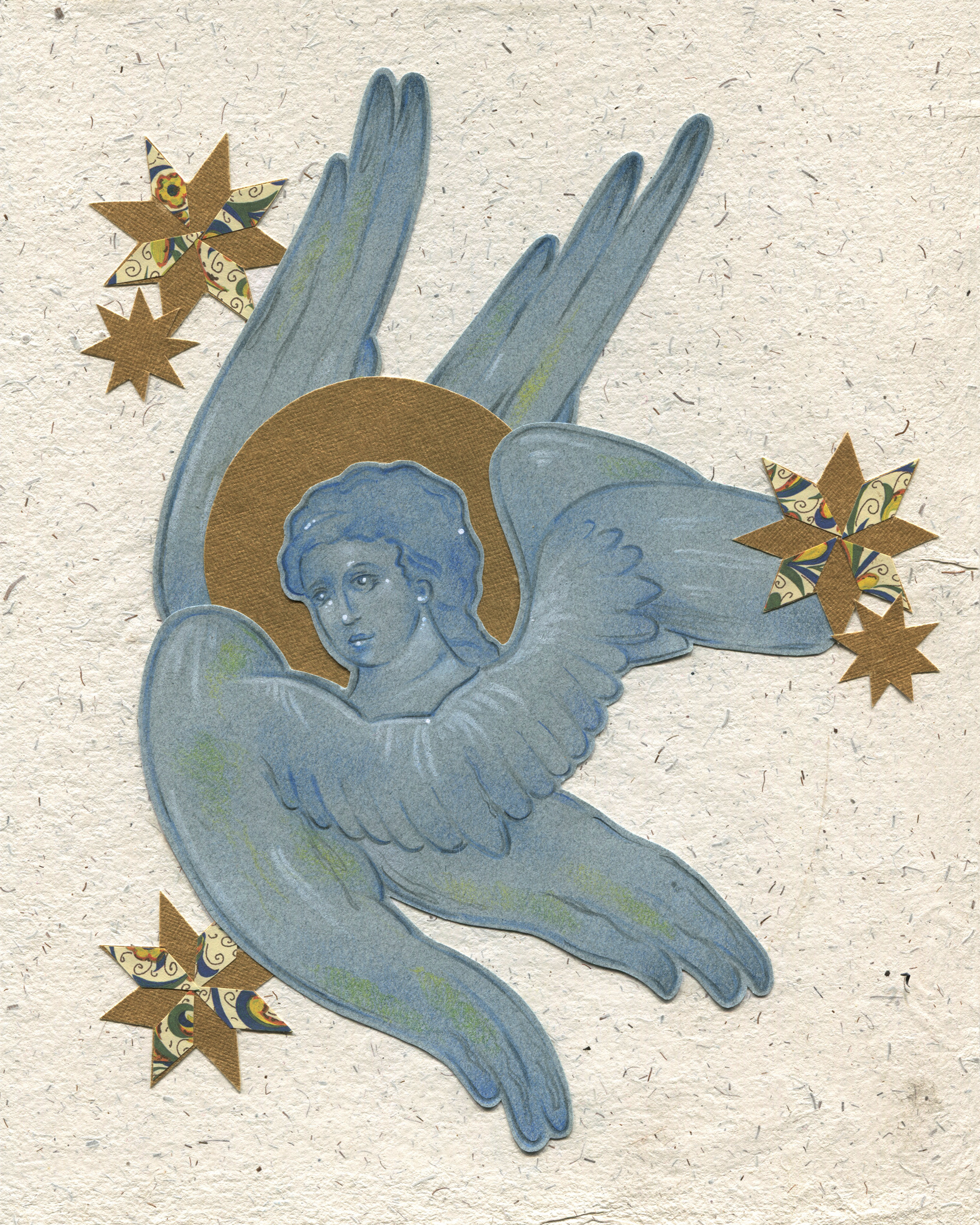 An iconographic illustration depicting a seraph (the highest rank of angels). The Seraphim and Cherubim are often painted in blue or red.